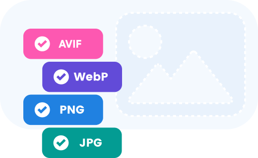 Effortless image format conversion: Transform to popular formats like AVIF, WebP, PNG and JPG with Tinify’s online converter.